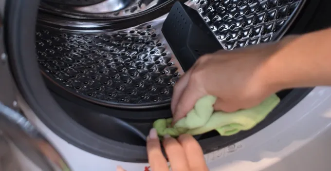 • پاک کردن لاستیک پس از هر بار شستشو: بعد از اتمام هر چرخه شستشو یک پارچه تمیز و خشک بردارید و تمام قسمت‌های لاستیک، به خصوص شیارها و چین‌های آن را، به آرامی پاک کنید. با این کار رطوبت، پرز و مواد شوینده باقی‌مانده که می‌توانند به مرور زمان باعث ایجاد کپک شوند از بین می‌روند.